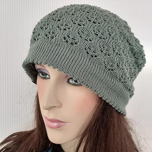 Ubergangsmutze Mit Sussem Lochmuster Beanie Damen Frauen Madchen Mutze Mycozycap Wolle Gestrickt Knit Cap Hat Graugrun Amazon De Handmade