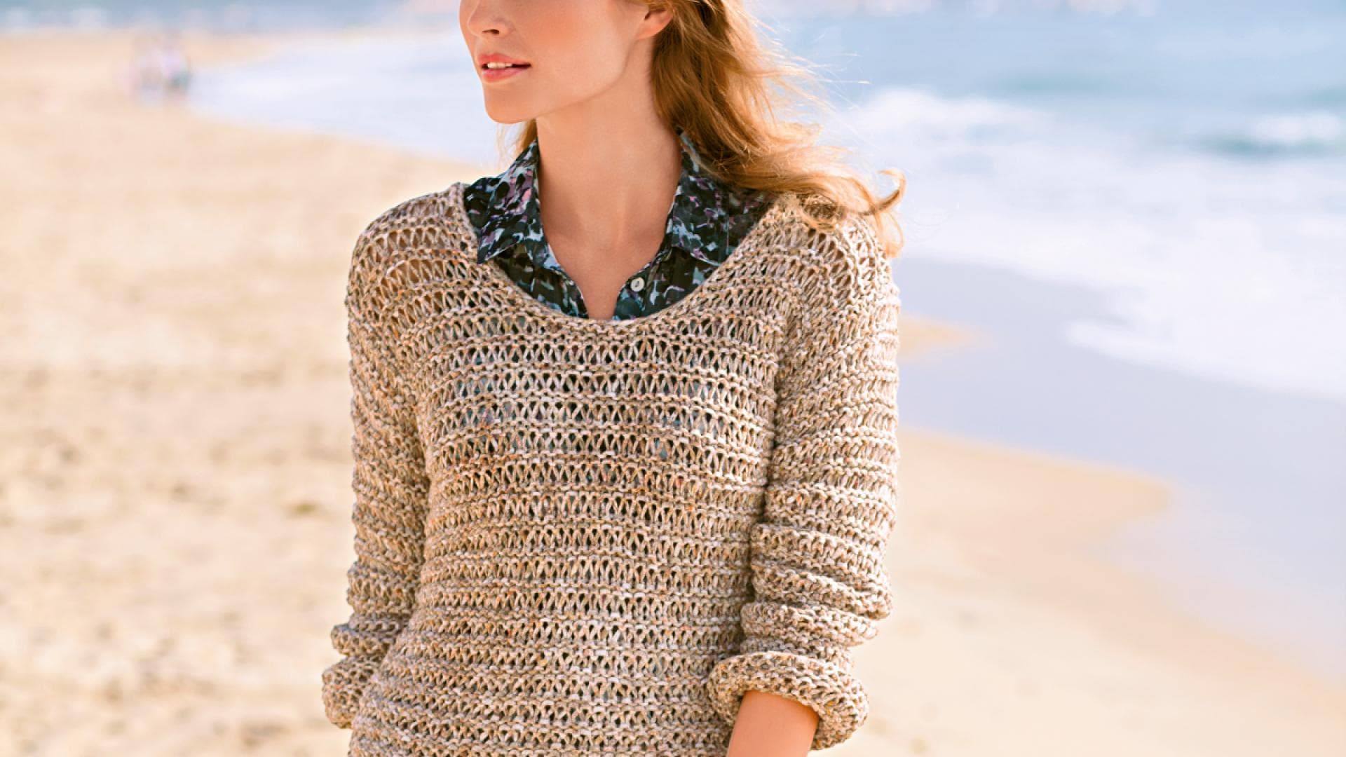 Gestrickter Drops Pullover In Cotton Light Mit Krausrippen Und Fallmaschen Grosse S Xxxl Drops Design Stricken Kleidung Hakeln Pullover Stricken