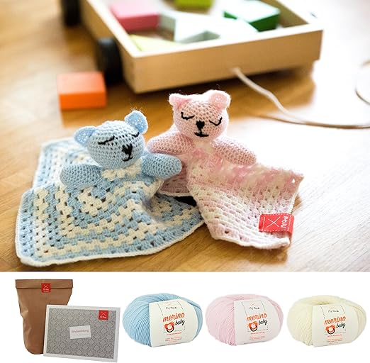 Myoma Hakelset Fur Babys Schnuffeltuch Mit Teddy Kopf In Babyblau Babyrosa Baby Hakeln Set Baby Hakeln Baby Hakelset Mit 3 Knauel Babywolle Aus 100 Merinowolle Baby Hakeln Anleitung Amazon De Kuche Haushalt