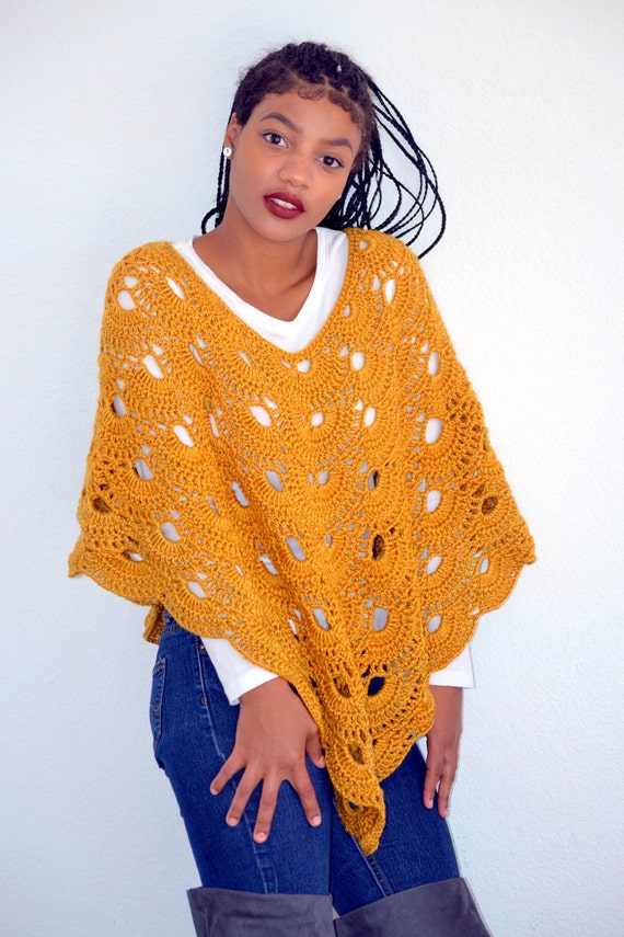 The Virus Poncho In Mustard Crochet Mustard Virus Poncho Etsy