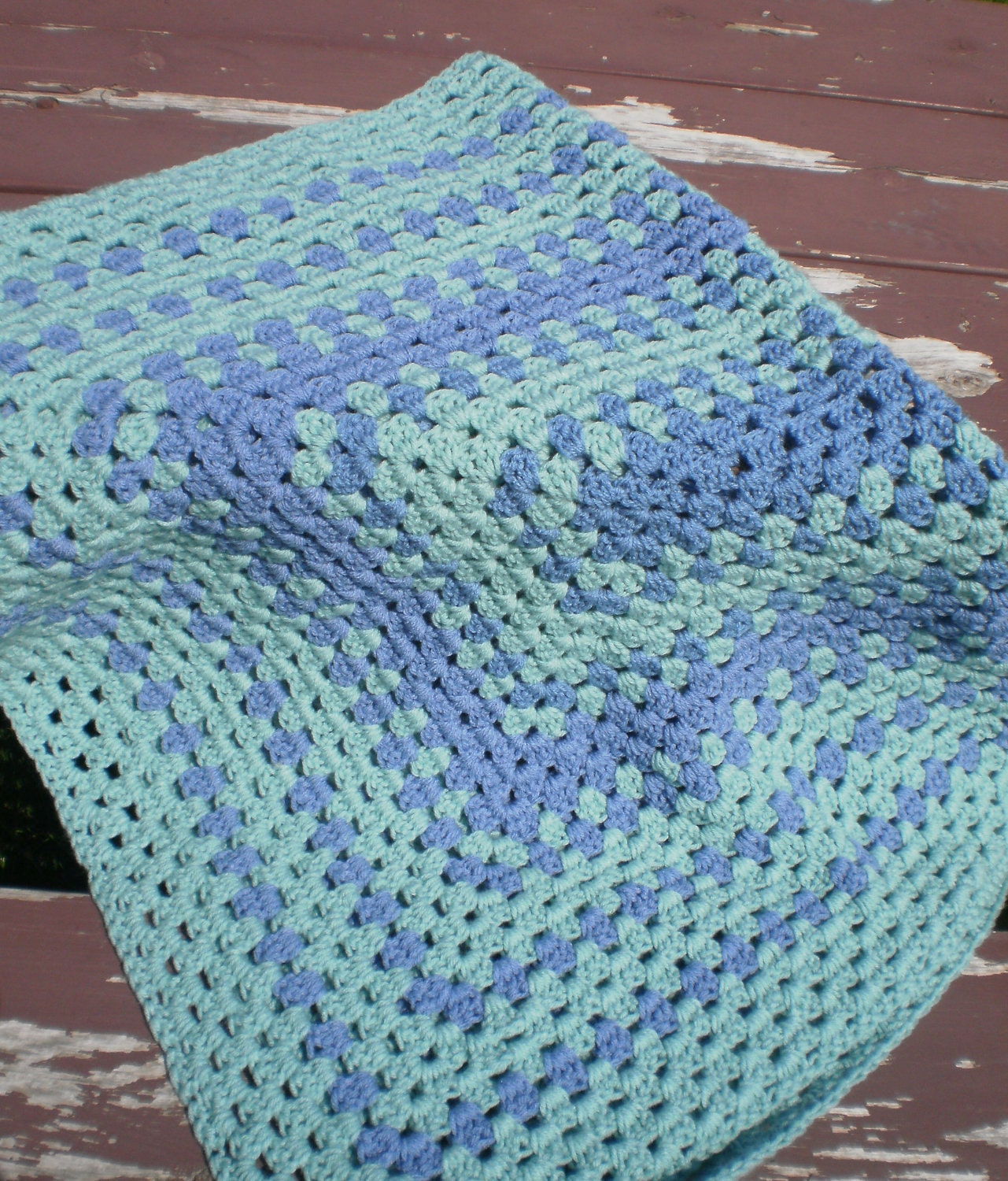 Crochet Afghan Rectangle Granny Square Green And Slate Blue Etsy