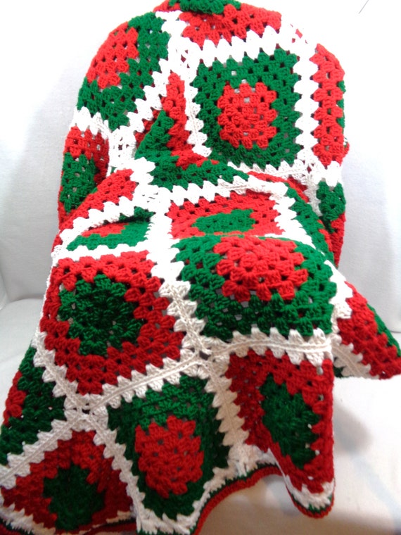 Christmas Blanket Crochet Granny Square Afghan Red Green Etsy