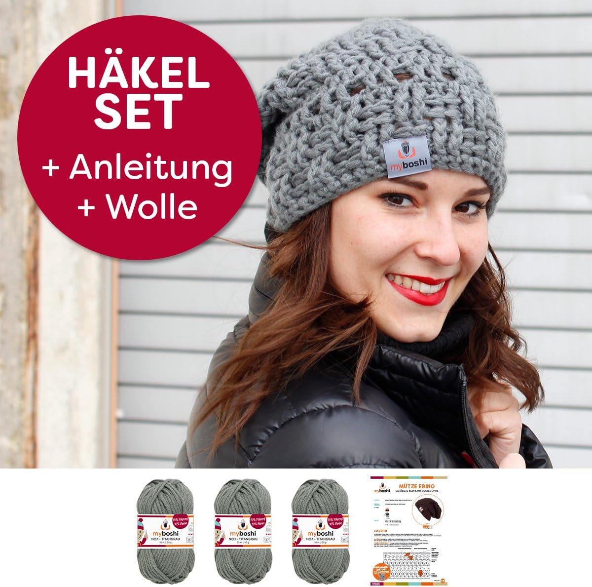 Myboshi Hakel Set Mutze Ebino Aus No 1 Anleitung Wolle Mit Passender Hakelnadel Titangrau Amazon De Kuche Haushalt