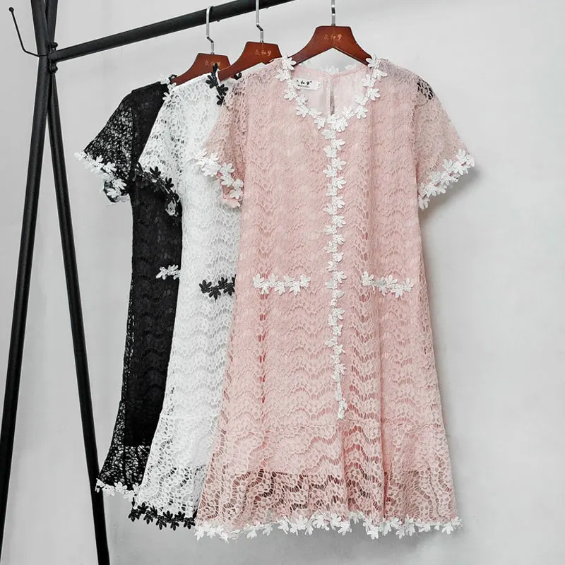 2019 Sommer Frauen Elegante Vintage Aushohlen Hakeln Spitze Kleid Mode Hohe Taille Lose Arbeit Buro Kleid Casual Kleider Aliexpress
