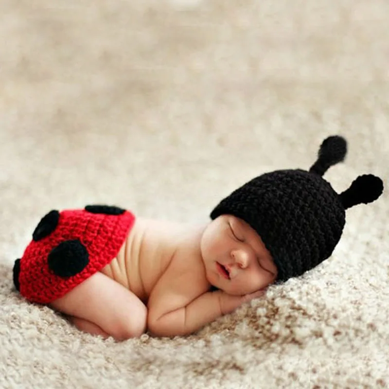 Rot Schwarz Marienkafer Neugeborenen Baby Tier Fotografie Requisiten Kostum Set Handgemachte Hakeln Gestrickte Hut Mit Cape Outfit Hat Hat Moldhat 2012 Aliexpress