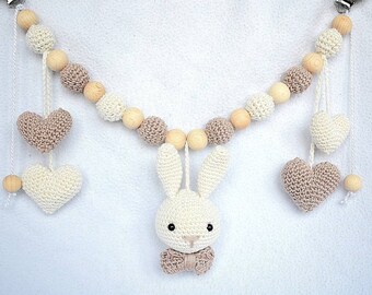 Kinderwagenkette Gehakelt Amigurumi Hase Leine Natur Crochet Necklace Crochet Jewelry