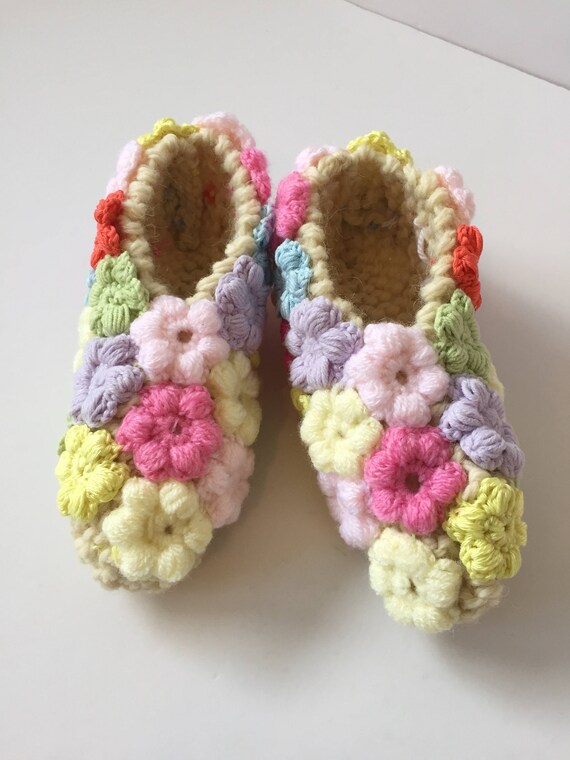 Frauen Madchen Hakeln Puff Blumen Hausschuhe Wolle Etsy